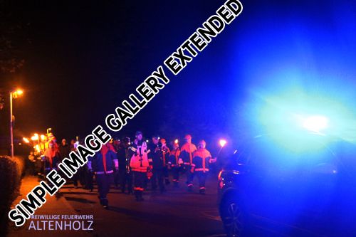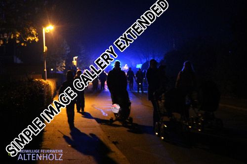 Um 18 Uhr startete der Zug mit dem vorausfahrenden Kommandowagen der Feuerwehr Altenholz, sowie dem Spielmannszug aus Felm, begleitet von den Fackelträgern der Jugendfeuerwehr Altenholz und sorgte für musikalische Begleitung. In einiger Entfernung folgte der zweite Spielmannszug aus Ascheffel und begleitete auch im hinteren Teil des Laternenzuges die Teilnehmer mit typischen Laternenliedern. Das Schlusslicht in blau machte der Einsatzleitwagen der Feuerwehr Altenholz.