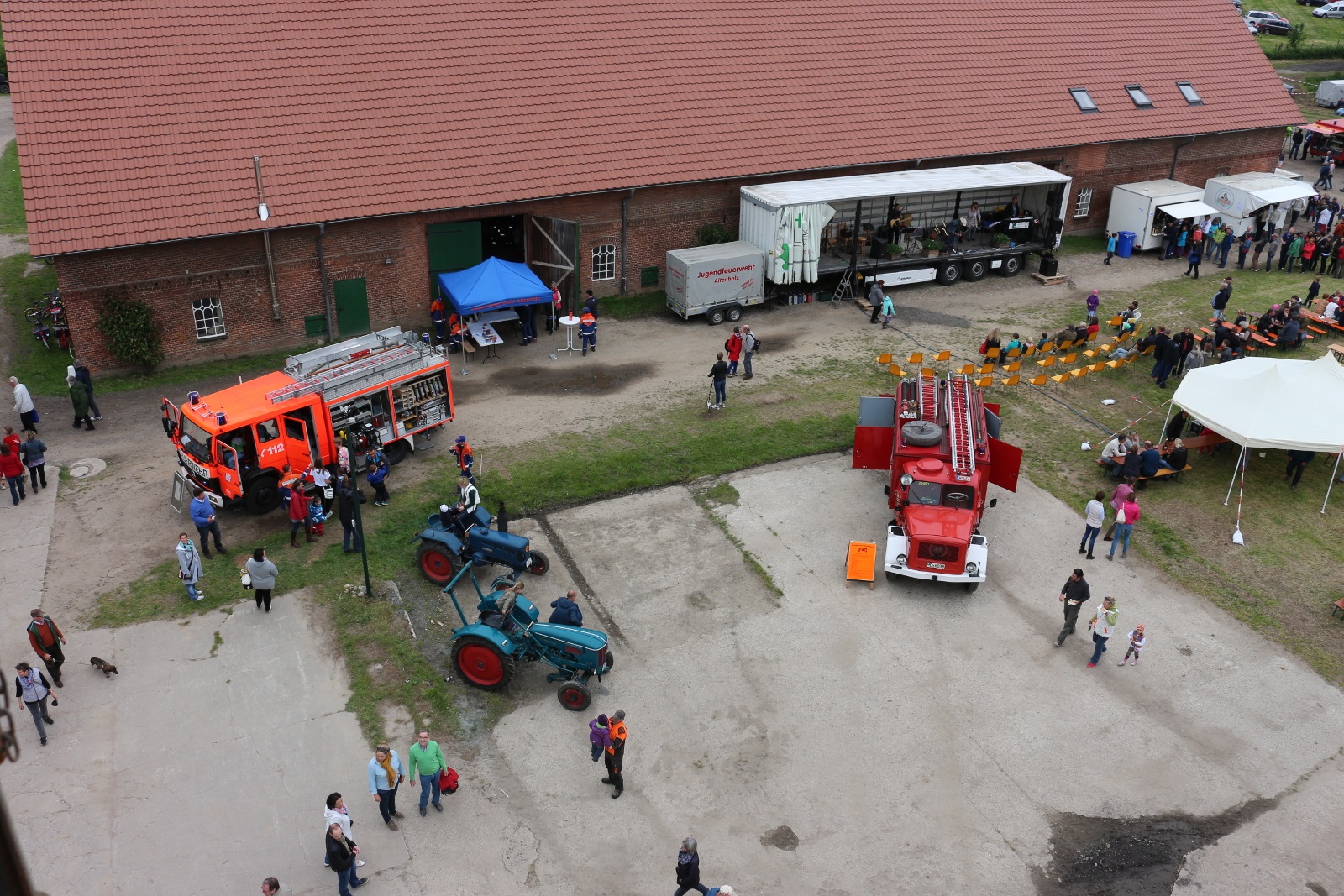 Großer Andrang beim Spargelfest auf dem Gut Friedrichshof, zu dessen Gelingen die Freiwillige Feuerwehr Altenholz einen nicht unerheblichen Beitrag leistete. Unsere Kameradschaft war mit 22 aktiven KameradInnen und 20 Jugendfeuerwehrleuten nebst 4 Betreuer(inn)en vor Ort und sorgte für Hilfe beim Auf- und Abbau, den reibungslosen Festbetrieb und das leibliche Wohl der vielen Besucher. Auch bei der Planung erfährt der Veranstalter und Inhaber des Gutes Richard Hoene durch unseren Zugführer Alexander Wentorf Unterstützung. Während der gesamten Veranstaltung hält unser Kamerad Thomas Kämpfer im wahrsten Sinne des Wortes die Strippen in der Hand – denn er sorgt für eine stabile und unterbrechungsfreie Stromversorgung.
