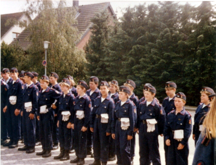 Auf diesem Bild sieht man die Jugendlichen der gerade gegründeten Jugendfeuerwehr Altenholz im Jahr 1989.